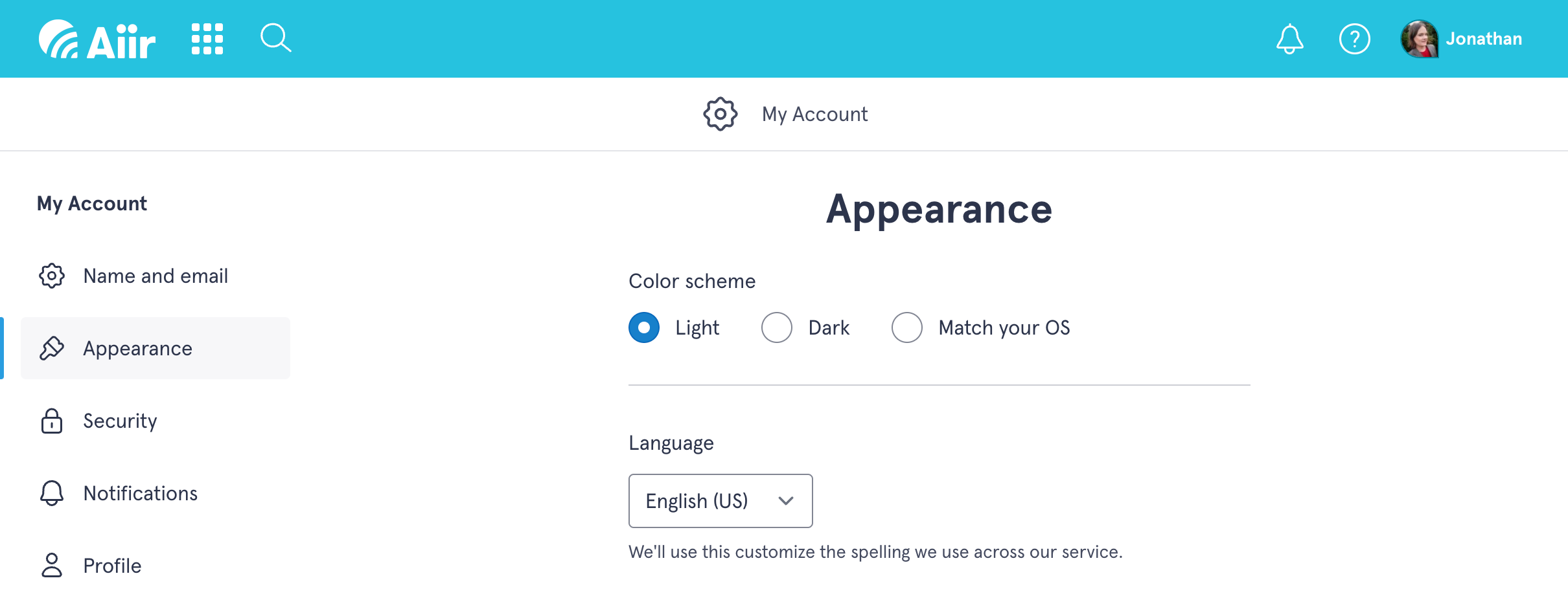 - Match your OS: This means whatever preference your device has, we'll match it. This is particularly useful if you have different options set on different machines.